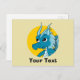 Personalised Postcard with illustration of cute blue dragon girl / fairy-tale design for kids in yellow circle , design for kids by Maxi Harmony,