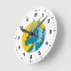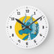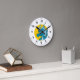 Clock with illustration of cute purple and yellow dragon girl / fairy-tale design for kids in blew circle , design for kids by Maxi Harmony,