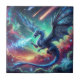 A mystical blue dragon flies through a vibrant cosmic sky, surrounded by stardust, snowflakes, and shooting stars.