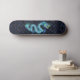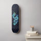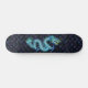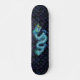 A cool detailed Chinese style dragon in shades of blue, green and purple on a dark blue dragon scale background.