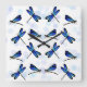 blue dragonflies square wall clock