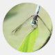 Blue Dragonfly on a green leaf Classic Round Sticker