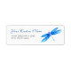 Looking for a blue dragonfly return address label template to beautify your envelopes? Effortlessly personalise these unique blue watercolor return address label templates! They elegantly complement the dragonfly business cards, thank you note cards, wedding invitations, and other unique dragonfly items in its collection. Category: personalised dragonfly address labels; return address label templates with dragonflies; and dragonfly labels and stickers. Colours: blue and white with hints of purple and grey.