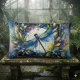 Blue Dragonfly Watercolor Botanical Lumbar Cushion