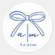 Blue Drawn Bow Whimsical Wedding Monogram Classic Round Sticker