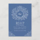 Blue drawn leaf monogram RSVP wedding QR Code Enclosure Card