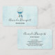 Business cards with a pretty watercolor dreamcatcher. Blue, turquoise and cream colours. Decorated with feathers, beads and flowers.