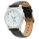 A watch with a pretty watercolor dreamcatcher. Blue, turquoise and cream colours. Decorated with feathers, beads and flowers.