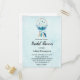 Bridal shower or other event invitation with a pretty watercolor dreamcatcher. Blue, turquoise and cream colours. Decorated with feathers, beads and flowers.