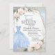 Blue Dress,Pink Roses Frame Silver Sweet 16 Invitation