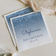 These chic, feminine fiftieth (or any year) birthday party paper napkins feature a sparkly blue faux glitter drip border and blue ombre background. Personalise them with the guest of honour's name in blue handwriting script, with her birthday and date below in sans serif font.