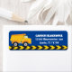 Cool custom construction dump truck birthday party return address labels for a child who loves yellow construction vehicles in yellow and blue. Fun vehicle design for a little boy who loves cars and trucks. Customise with your address under the black and yellow caution tape.