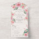 Blue Dusty Blush Pink & Peach Floral Wedding All In One Invitation