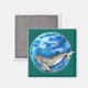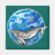 Original watercolor painting by Sandra Gale, featuring a humpback whale swimming in front of a blue watery globe representing the earth. Perfect design for whale watchers, divers, conservationists and those who love whales.