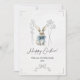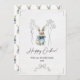 Celebrate Easter in style with this charming and customisable greeting card! The front features an adorable bunny wearing a blue bow alongside the words 'Happy Easter'—personalizable with a name and date to make it truly unique.
