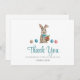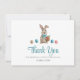 A blue Easter Bunny thank you card with a garden or spring-theme. A perfect way to thank your guests for coming to your party.