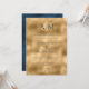 Beautiful bride & groom monograms at the top of this beautiful wedding invitation. Faux gold background with deep blue font to coordinate with the distressed blue back of this elegant invitation. Absolutely breath taking.