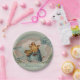 Paper Easter Plates showing Baby Chicks on blue eggs surrounded by a flowered egg shell with ribbons and wishing you Happy Easter!
