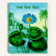 Personalised journal in a stylised illustration of a blue Egyptian lotus plant / water lily against an exotic Far Eastern landscape