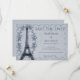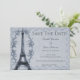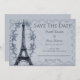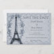 Announce your upcoming wedding day with a Blue Eiffel Tower save the date announcement. Save the Date design features the Eiffel Tower adorned with a fancy flourish frame against a grunge background and postal stamp embellishment. Additional wedding stationery available with this design as well. Need help with customisation? Please contact me and I will work out the wording and details to fit this design to your satisfaction.