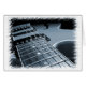 Close-up down the neck of a blue electric guitar. Modern photography gifts for guitarists and musicians. This guitar photo is available on clothing, gifts, collectibles and much more.