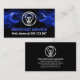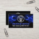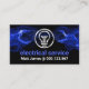 In a black cover, a hot blue electrical lightning streaks across the card's face to power up a silver bulb logo you can use. Just below this is your business name "electrical service", which you can change alongside the contact details.