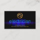 A blue electrical pulse lightning zaps across the face of the card illuminating a blue "electrician" signage near the centre.