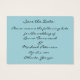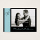 Mini save the date annoucement wedding cards are an easy and handy reminder to guest of the upcoming event. The blue elegance save the date cards feature a two sided black background, the front offers a space to personalise your card with your own photo and names. Also features an light blue strip with a small floral branch graphic at the top of the stripe. Both sides of the card has a build in template to help you customise with all your own wording. Mini save the date cards are designed as a large business card style. Offered in three convient sizes, Design can easily fit any of the following sizes: Chubby (2.5" x 3.5") packaged as 100 cards, Skinny (1" x 3") packaged as 20 cards or Business (2" x 3.5") packaged as 100 cards. To choose a different size simply select the "Business Card Options" tab. Use the premade template to customise save the date cards with all your own wording. Change text style and/or font by selecting the "customise it" feature.