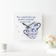 Blue elegant tea cup - with a quote: "There is no trouble so great or grave that cannot be much diminished by a nice cup of tea..." personalized kitchen wall decor clock