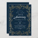 Celebrate with this Elegant Gold Leaf Anniversary design featuring a frame of elegant gold leaves against a blue background. PLEASE NOTE: The Gold featured on these invitations is NOT REAL FOIL and is printed in flat colours.