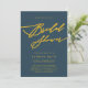 Blue Elegant Gold Script Minimalist Bridal Shower Invitation