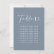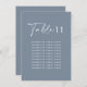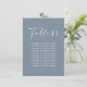 Budget dusty blue elegant modern wedding table number seating chart decor sign.