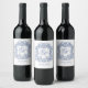 Blue Elegant Monogram Crest Vintage Wedding Wine Label