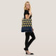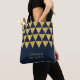 Elegant dark blue tote bag featuring chic faux gold triangle pattern that you can personalise with your name. Great as gifts for family and friends or for yourself.