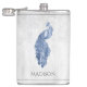 The flask itself is fine. It’s a cheap flask, obviously bought in bulk, however am prepared to overlook that. Given that it is a personalized item, I would have liked to have seen gift boxing instead of the generic packaging. Terrible printing, and/or quality. It’s a cheap, tacky vinyl. It is not cut straight and is also applied in a way that it is overhanging the bottom, causing the glue to catch on items and it will eventually roll and tear, damaging the wrap.