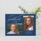 Blue Elegant Script 3 Photo Graduation Party Invitation features a beautiful and elegant script overlaying your photo. Your party details and photo are on the back.