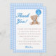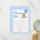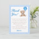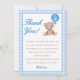"Show your gratitude with this elegant 'We Can Bearly Wait' blue thank you card. Featuring a sweet teddy bear and soft blue gingham design, this card is the perfect way to thank your guests for celebrating the arrival of your little one. The charming and playful design adds a personal and heartfelt touch to your message of appreciation."