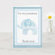 A sweet blue elephant 1st birthday grandson card. It features a soft blue watercolor elephant, which says "1st birthday". You will be able to personalize the front of the card with your grandson's name. The inside card message can also be easily personalized. The back of this elephant grandson 1st birthday card features the same blue elephant, which you'll be able to personalize underneath with the year. This would make a sweet keepsake.