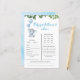 Add a fun touch to your baby shower with this adorable Blue Elephant Baby Predictions and Advice Card. Guests can guess the baby’s details like gender, birth date, and weight, then share sweet advice for the new parents. Perfect for keepsakes, memory books, or game activities at baby showers. Features a cute watercolor elephant with balloons and elegant greenery design — ideal for a boy-themed celebration.