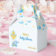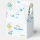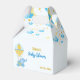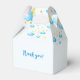Cute favour gift boxes for your twin boys baby shower with "thank you" and "BABY SHOWER" written in soft typography and a stylish script with swashes and blue watercolors of baby elephant. Personalise the name and shower date in simple typography.