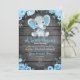 Blue Elephant Baby Shower invitation, rustic boy Invitation