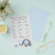 Use our blue and grey elephant themed "What's in Your Purse Game" to play this easy and popular shower game. The guests will check off the items that they have in their bags/purses and whoever has the most points tallied wins.
