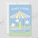 Blue Elephant Carousel 1st Birthday Party Invitation