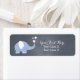 Baby shower design with cute blue elephant spouting little hearts on a chalkboard background. Customisable text. PinkInkArt original!