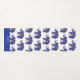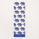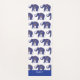 Personalised yoga mat done with a white background and a blue decorative elephant pattern. A blue band, across one end, has white custom text ready to personalise. Same design is featured on both the front and backside of the mat.