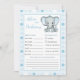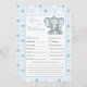 Blue white polka dot Elephant Baby Advice and Prediction card. Add your predictions about the new baby and leave your best wishes.