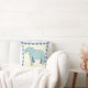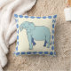 Make your couch extra special with this hand-drawn illustration of a blue elephant with a periwinkle polka dot on a cream background throw pillow.