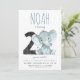 This invite features a blue elephant for a second birthday party. Back of invite has a blue gingham pattern; perfect for boy's jungle animal theme 2nd birthday party. Personalise the invite with your details and you have the options to purchase printed invitations or a digital download.