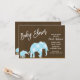 Blue Elephants Brown Trendy Modern Baby Shower Invitation