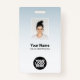 Easily personalise this Custom Corporate Employee Security Id Name Badge with Photo, Scan Bar Code or Qr code and business logo featuring a white ombre gradient on background colour. A simple business design in elegant chic dusty blue and white colours with an ombrè overlay, fully customisable in front and back sizes, sans-serif basic and modern fonts and a professional, elegant and clear look. The badges are avaiable with lanyard, metal clip or with retractable. No minimum order.